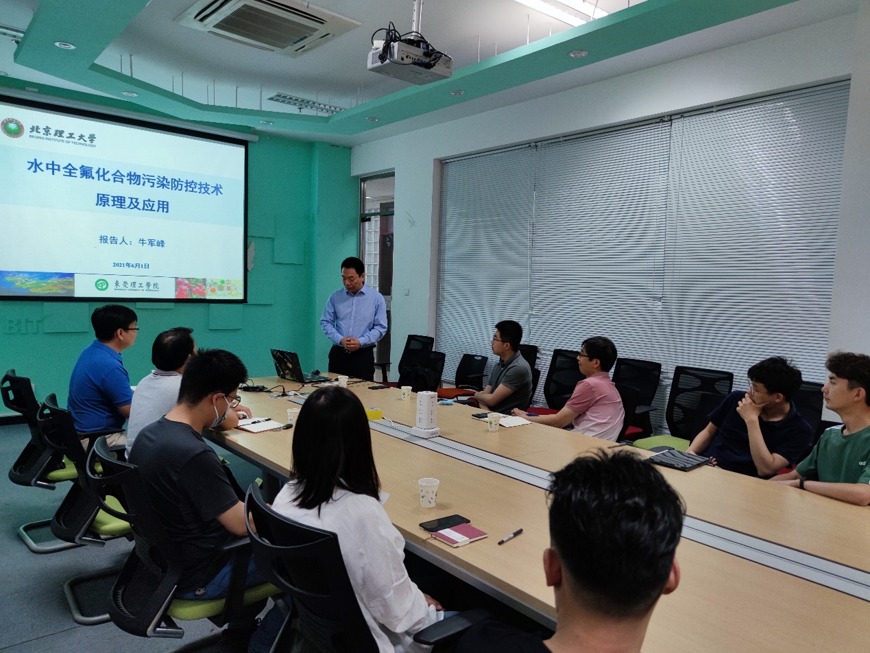 应徐熙焱特别研究员邀请,2021年6月1日上午,国家级领军人才牛军峰教授到访taptap点点体育,作了题为“水中全氟化合物污染防控技术”的学术报告。黎汉生副院长等20余化院师生参加了报告,报告由徐熙焱老师主持。