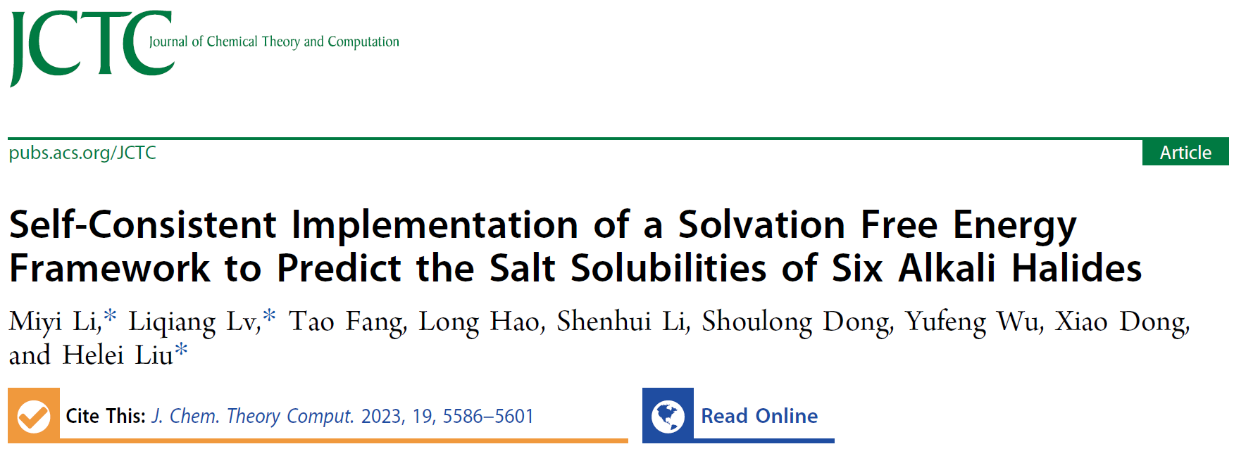 近日,taptap点点体育李弥异、刘贺磊、董守龙等在溶液热力学领域发表重要研究性论文(https://doi.org/10.1021/acs.jctc.3c00083)。论文发表在《Journal of Chemical Theory and Computation》(影响因子:5.5,1区Top)。该工作以taptap点点体育为第一通讯单位,李弥异为第一作者和通讯作者,刘贺磊教授同为通讯作者,董守龙、董晓老师,博士生李申辉,硕士生吴宇峰为参与作者。