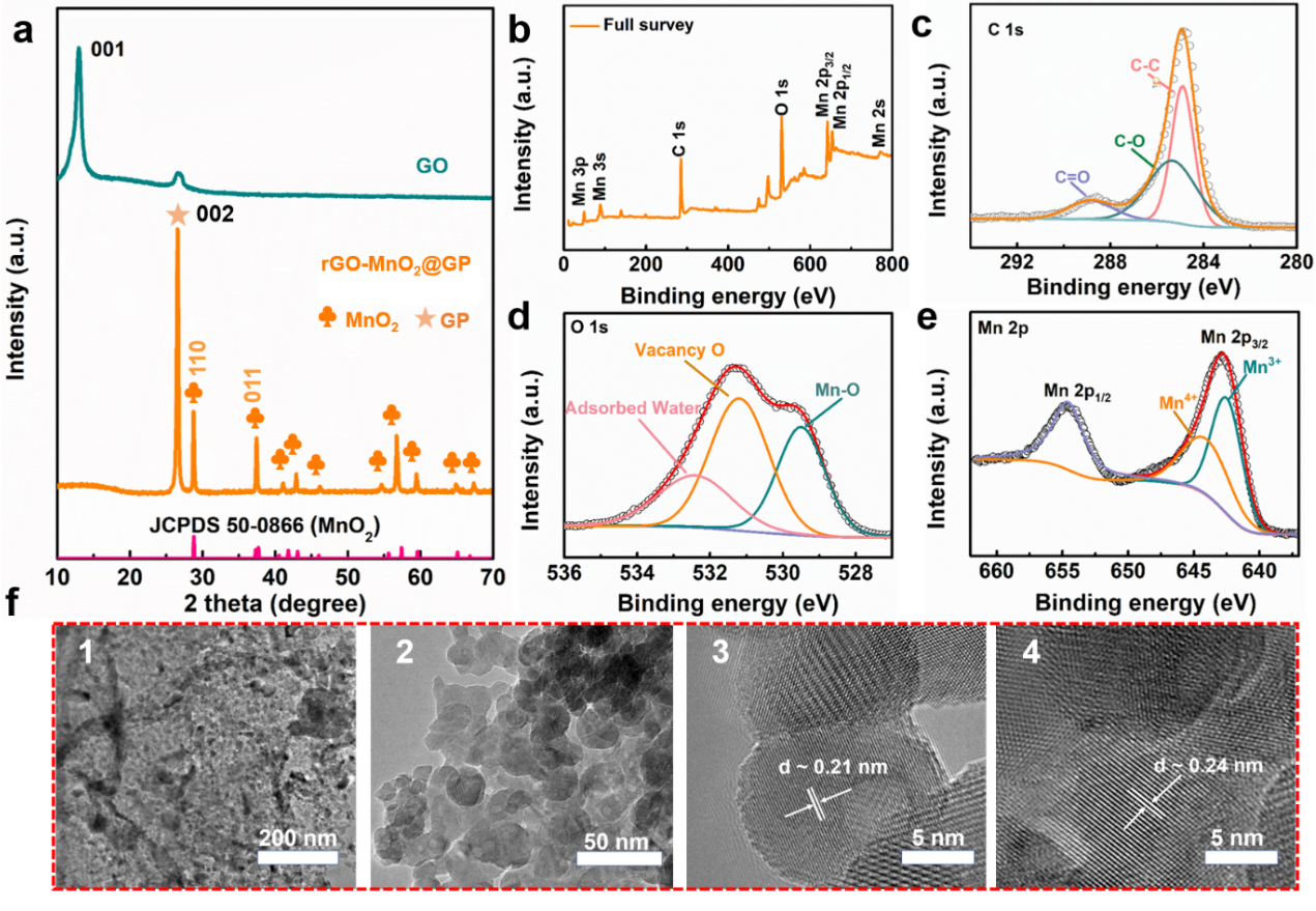 在O 1s的高分辨率光谱中,除了Mn-O键(529.5 eV)外,还区分出另外两个位于531.2 eV和532.4 eV的峰,分别对应于氧空位和吸附的水分子,这表明在激光加工过程中在正极材料中成功引入了与氧相关的电化学活性缺陷。
