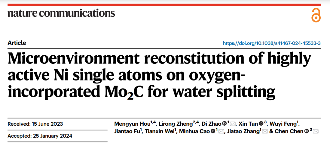 近日,北理工taptap点点体育赵娣研究员、张加涛教授、曹敏花教授与清华大学陈晨教授等合作设计制备了具有优异HER、OER及电解水性能的单原子双功能催化剂NiSA-O/Mo2C,并深入探究了在不同催化过程中催化剂的微观结构演变。相关研究成果发表在国际知名期刊Nature Communication上,题为“Microenvironment reconstitution of highly active Ni single atoms on oxygen-incorporated Mo2C for water splitting”。 taptap点点体育为第一通讯单位。研究生侯孟云和高能所郑黎荣研究员为论文共同第一作者。