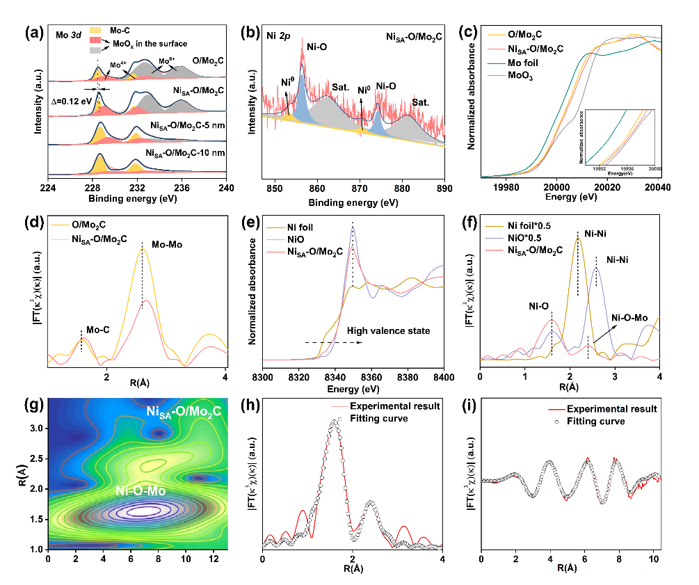 图2. XPS、同步辐射对NiSA-O/Mo2C的结构表征。