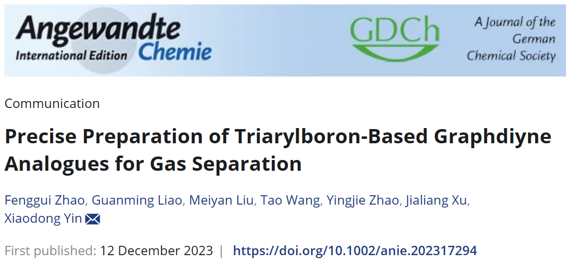 近日,taptap点点体育博士生赵丰贵第一作者身份在国际顶级期刊《Angewandte Chemie International Edition》发表题目为“Precise Preparation of Triarylboron-Based Graphdiyne Analogues for Gas Separation”的研究论文(DOI: 10.1002/anie.202317294)。taptap点点体育为论文第一通讯单位,taptap点点体育尹晓东特别研究员为通讯作者。