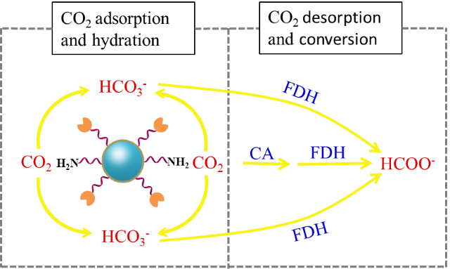 由于快速工业化和化石燃料的使用,二氧化碳气体(CO2)的排放在过去几十年显著增加,这导致了不可预测的环境变化,如气候变化和全球变暖。近年来,酶催化因其显著的优势成为高效CO2加氢的潜在候选材料。由于温和条件下CO2的溶解度较低,极大地限制了其转化。为此,碳酸酐酶已被用于提高酶催化的CO2转化,但其利用效果仍不令人满意。