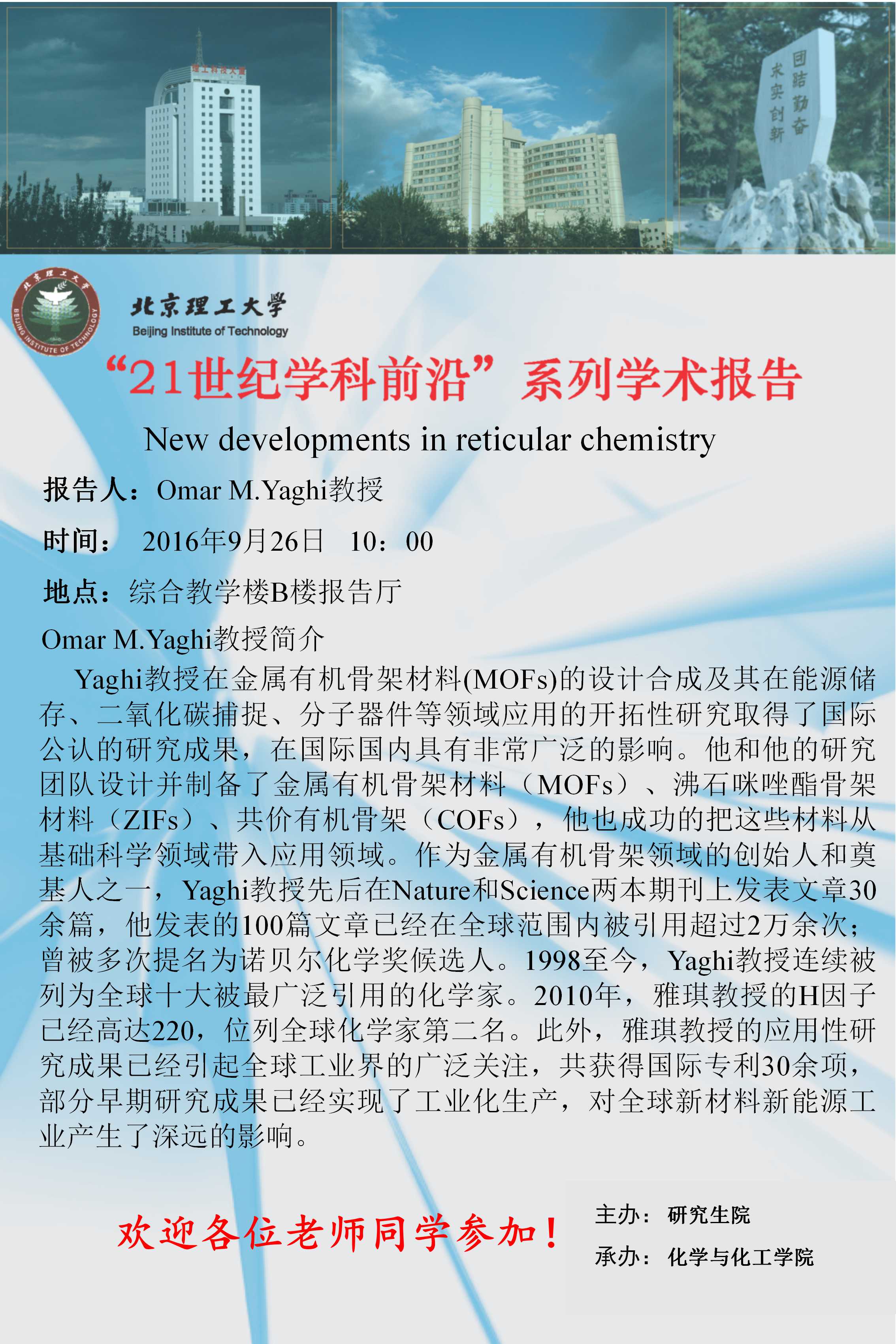 【taptap点点体育】“21世纪学科前沿”Omar M.Yaghi教授学术讲座通知