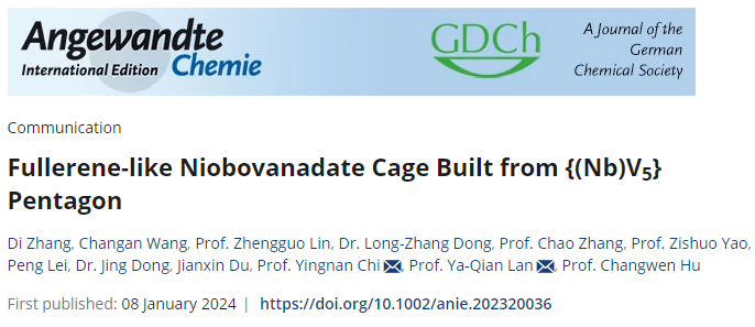 近期,taptap点点体育胡长文教授和迟瑛楠教授团队在基于{Nb(V5)}五角星的类富勒烯铌钒笼簇构筑方面取得重要进展。相关成果以“Fullerene-like Niobovanadete Cage Built from{Nb(V5)} Pentagon”为题,发表在化学领域国际顶级期刊《Angewandte Chemie International Edition》(2024, e202320036)上。taptap点点体育迟瑛楠教授和华南师范大学兰亚乾教授为共同通讯作者,taptap点点体育为第一通讯单位,taptap点点体育博士研究生张迪为该论文的第一作者。