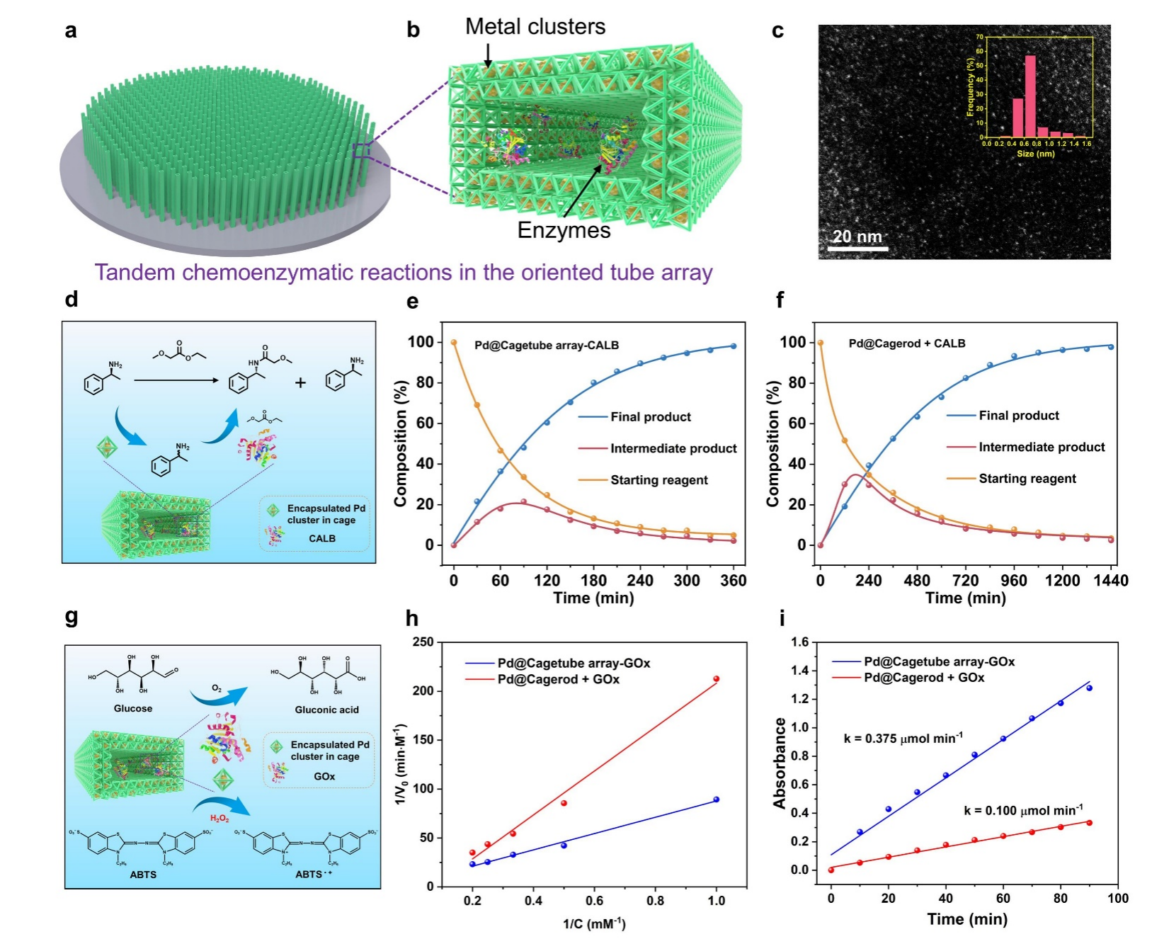 图4 基于分子笼取向微管阵列多腔室负载活性位点的仿生串联催化