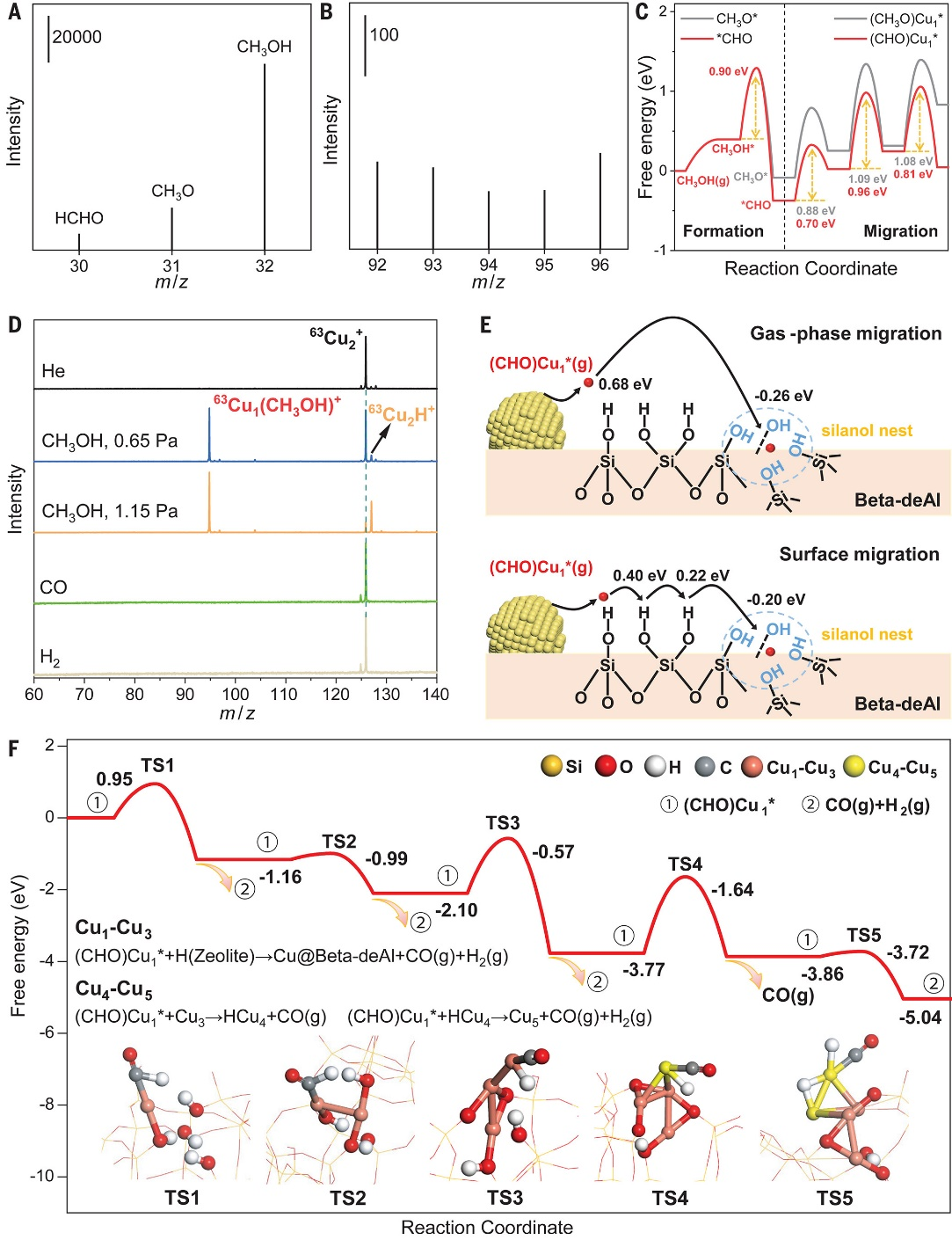 在本论文中,taptap点点体育大学为合作单位,负责催化剂铜颗粒结构原位研究技术支撑。通过实验室自行设计搭建的以飞行时间质谱为主体的原子分子团簇原位反应装置,以结构清晰、可控以及重复性良好的气相团簇作为研究模型进行了63Cu2+阳离子与甲醇、H2、CO等气体小分子的研究。团簇研究结果表明只有甲醇分子可以引起Cu–Cu键断裂,另外两种气体则显示惰性。该部分为催化过程关键中间体的捕获提供了重要信息。