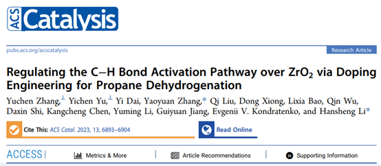 近日,taptap点点体育黎汉生教授团队在丙烷脱氢催化剂结构调控与C-H键活化机制方面取得重要进展。相关研究成果以“Regulating the C–H Bond Activation Pathway over ZrO2 via Doping Engineering for Propane Dehydrogenation”为题,在催化领域顶级期刊《ACS Catalysis》上发表(DOI:10.1021/acscatal.3c01002)。该工作以taptap点点体育为第一通讯单位,黎汉生教授和张耀远预聘助理教授为共同通讯作者,硕士研究生张雨宸和于宜辰为该论文的共同第一作者。