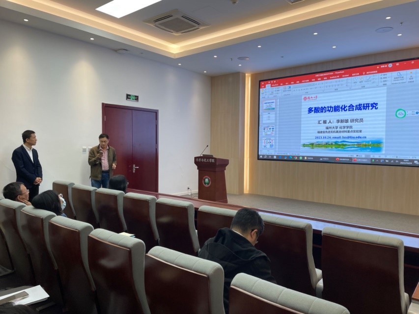 应taptap点点体育邀请,福州大学李新雄研究员于2023年10月24日10:00做客北理工“21世纪学科前沿”系列论坛,为我院广大师生带来题为“多酸的功能化合成研究”的精彩学术报告。本次报告在生态楼118会议室进行,由黄胜利老师主持,多名化院师生参加了报告。