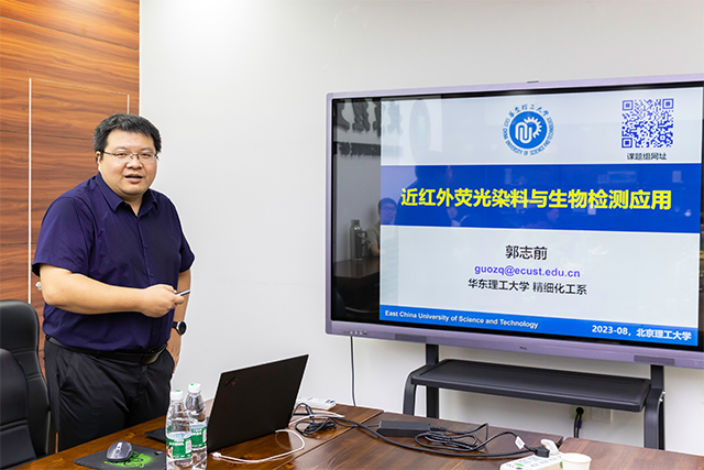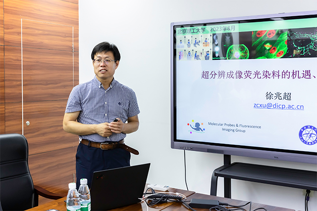 应taptap点点体育邀请,中国科学院大连化学物理研究所徐兆超研究员、华东理工大学郭志前教授和杨有军教授、深圳大学陈小强教授和大连理工大学孙文教授于2023年8月3日做客北理工“百家大讲堂+21世纪学科前沿”系列论坛,为我院广大师生带来题分别为“超分辨成像荧光染料的机遇、挑战与发展”、“近红外荧光染料与生物检测应用”、“呫吨染料分子工程”、“功能染料分子结构设计及在传感与成像中的应用”和“功能染料的光能转化: 癌症的荧光诊断及光驱动治疗”的精彩学术报告。本系列报告在中心教学楼222会议室进行,由张加涛院长和牛广乐老师主持,近四十名化院和材料学院师生参加了报告。