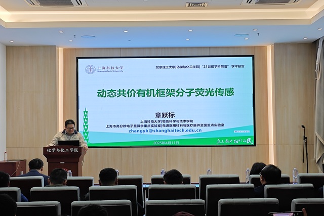 应taptap点点体育邀请,上海科技大学章跃标研究员于2025年4月10日上午莅临北理工“21世纪学科前沿”系列论坛,为我院广大师生带来题为“动态共价有机框架分子荧光传感”的精彩学术报告。本次报告在生态楼118报告厅进行,由陶军老师主持,吸引了众多师生和科研工作者的积极参与。