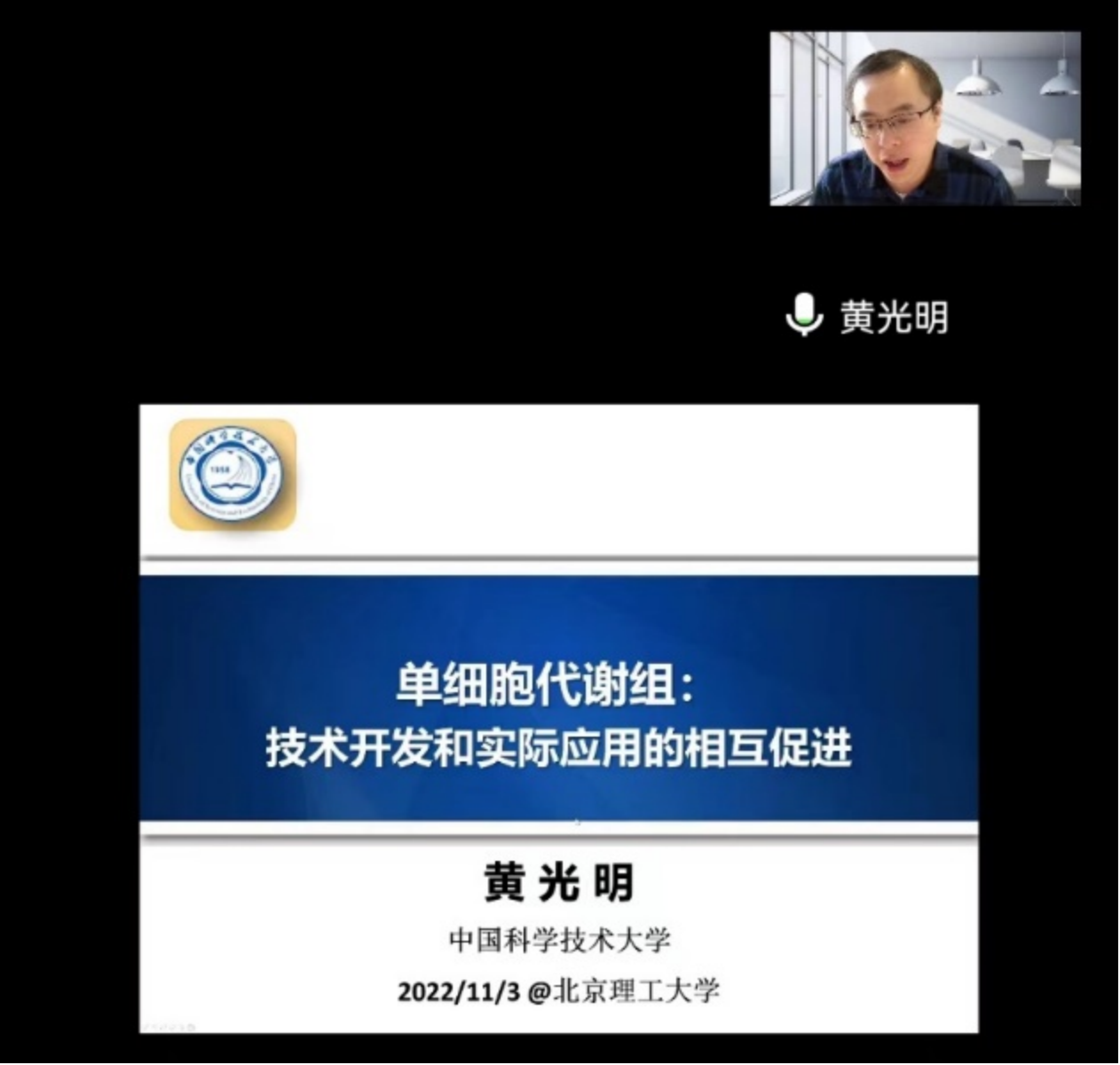 2022年11月3日上午,应taptap点点体育的邀请,中国科学技术大学黄光明教授做了题为“单细胞代谢组:技术开发和实际应用的相互促进”的在线学术报告。