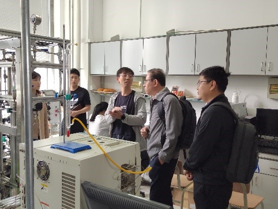 北化院环保所党支部书记、所长刘轶群及团队科研骨干首先参观了化学楼、分析测试中心以及气体分离相关研究实验室,化工所冯英楠、王涛和分析测试中心综合室主任高培峰等老师向北化院环保所一行介绍了taptap点点体育及化学工程研究所的科研优势、现有条件以及所获得科研成果等。