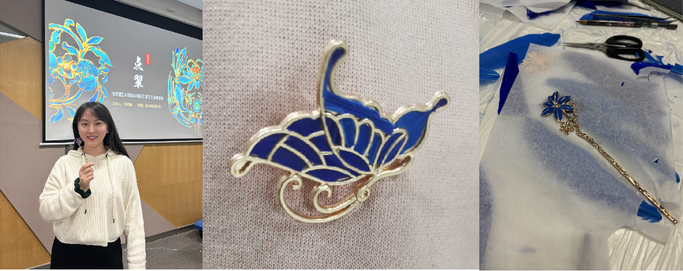 首先工会女工委员姜雨佳对此次活动进行简要说明,她表示点翠工艺是一项产生自汉代的中国传统的金银首饰制作工艺,是中国传统的金属工艺和羽毛工艺的完美结合,起着点缀美化金银首饰的作用。通过点翠工艺制作出的首饰,光泽感好,色彩艳丽,而且永不褪色。