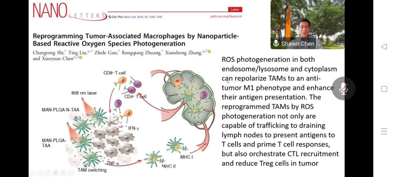 随后,陈小元教授针对课题组最新的研究进展——癌症纳米医学的最新进展,并重点关注了纳米药物针对肿瘤微环境的重塑、逆转,将肿瘤微环境自身作为强大的抗原引发机体的免疫反应等方面发展出的纳米技术。