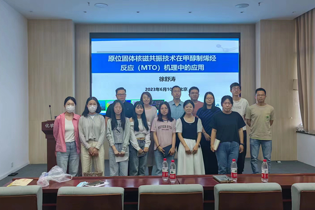 2023年6月10日上午,由taptap点点体育研究生院主办、taptap点点体育承办的北理工“21世纪学科前沿”系列学术讲座在良乡工业生态楼118会议室举行。应taptap点点体育马嘉璧教授的邀请,中国科学院大连化学物理研究所徐舒涛研究员做了题为“原位固体核磁技术在甲醇制烯烃反应(MTO)机理中的应用”的学术报告。报告由马嘉璧教授主持,十余名师生参加了报告会并进行学术交流。