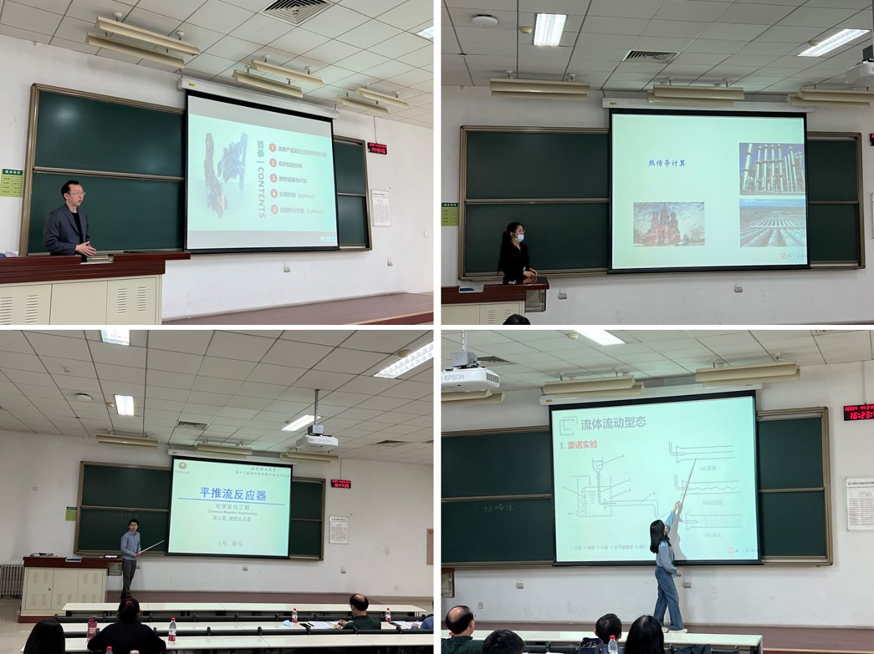 蔡玮玮、冯英楠、刘贺磊、毛恒、桑乐、谭璟、王涛、吴磊、徐熙焱等9名青年教师对化工原理、化学工程伦理、碳捕集与利用、化学反应工程、化工分离工程、化工自动化与仪表、化工制图与CAD等七门课程进行了教学演示,评委专家也从教学内容选择、演示开场设计、教学技巧、课程思政以及重点难点等多角度与参赛教师进行了交流,并给出了中肯的意见和建议。