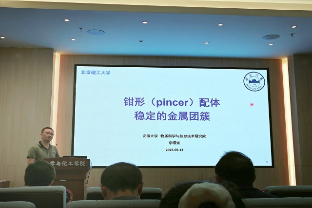 应taptap点点体育邀请,安徽大学李漫波教授于2025年5月13日做客北理工“21世纪学科前沿”系列论坛,为我院广大师生带来题为“钳形(pincer)配体稳定的金属团簇”的精彩学术报告。本次报告在生态楼118报告厅进行,由姚燎原老师主持,近六十名化院师生参加了报告。