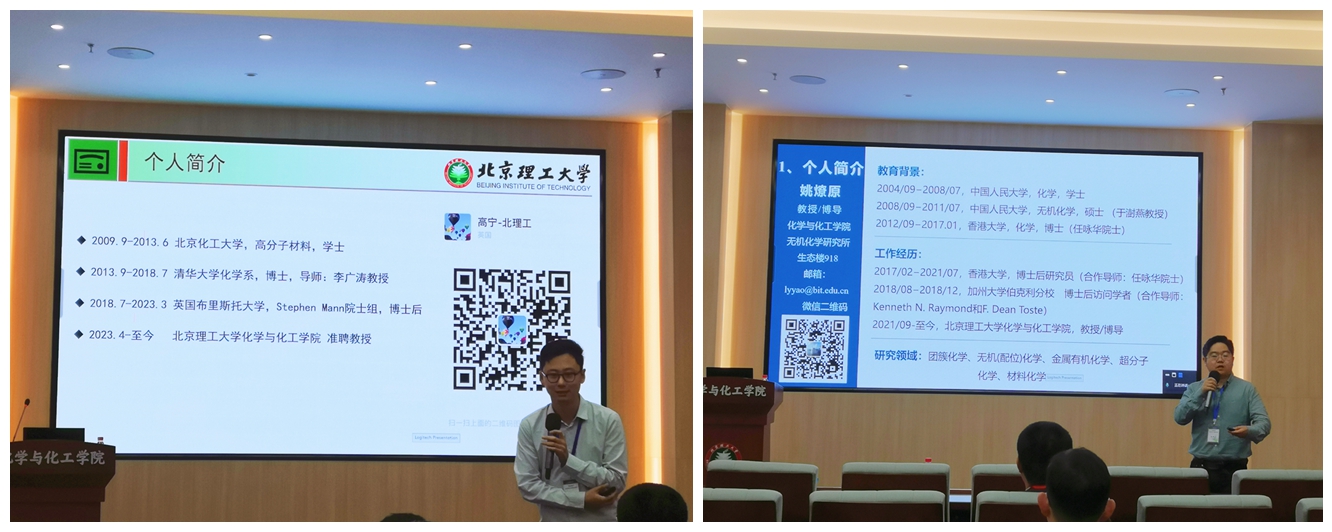 学院优秀青年教师代表高宁、姚燎原结合自己的经历向参会学者分享了自己入职北理工和申请人才项目的亲身经验和深切体会,并真诚感谢学校和学院在整个过程中所给予的指导和帮助,与会学者通过这一环节收获良多。