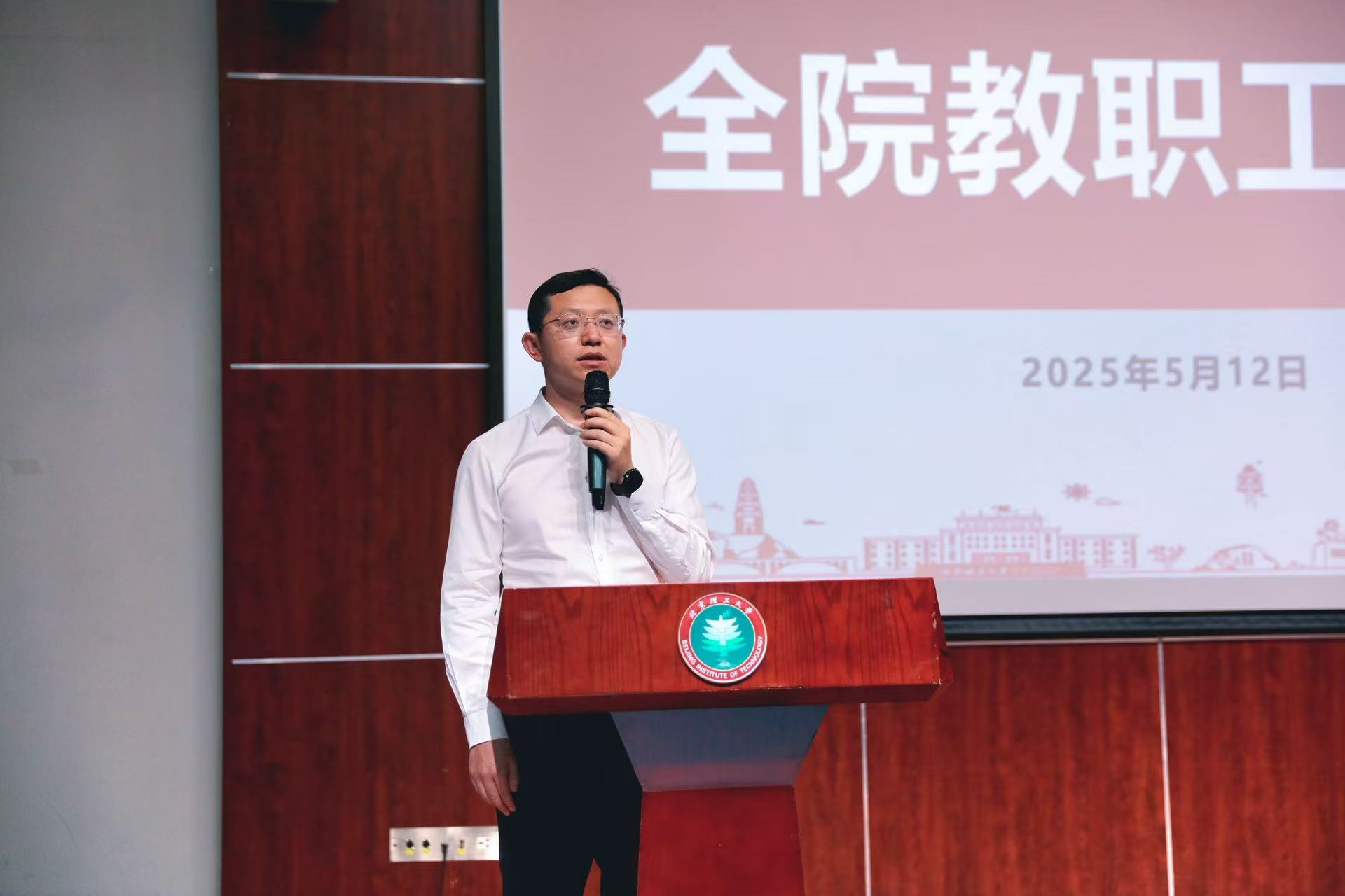 为推进深入贯彻中央八项规定精神学习教育走深走实,持续加强师德师风建设,教育引导教师以德立身、以德立学、以德施教,进一步维护风清气正的教书育人良好生态,2025年5月12日下午,taptap点点体育在综合楼报告厅召开师德师风建设工作推进会。全体教职工参加会议,会议由学院党委书记王振华主持。