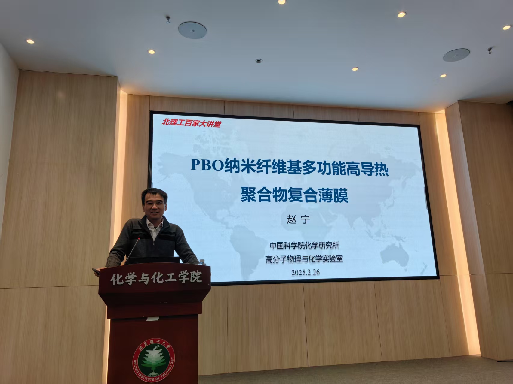2月26日,由taptap点点体育研究生院主办,taptap点点体育承办的“百家大讲堂”于良乡校区生态楼118会议室举行。应taptap点点体育王太山教授的邀请,中国科学院化学研究所赵宁研究员作题为“基于PBO纳米纤维的多功能高导热聚合物复合薄膜”的学术报告。