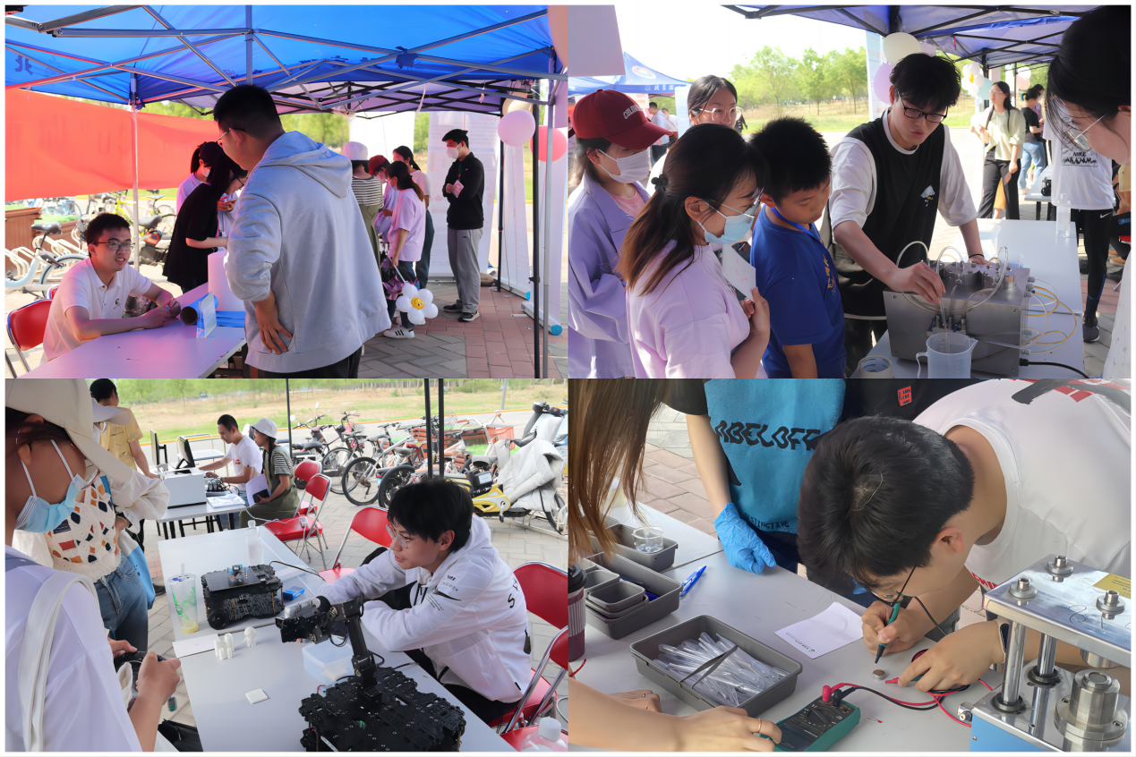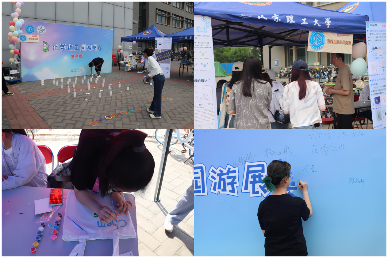 下午14时,化学化工园游展活动在工业生态楼前广场开幕。园游展现场设置了科研展示区和趣味游戏区。在科研展示区中,现场的工作人员向同学们展示了化学化工方向的科研技术和成果。此外,部分展位还设置了互动体验项目,同学们可以在展区用亲手制作的纽扣电池点亮小灯泡,操控课题组研发的特种化工机器人准确夹取模型,利用红外光谱仪读取指纹数据等。