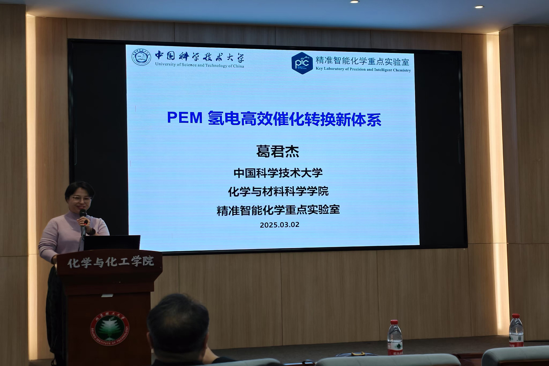 应taptap点点体育邀请,中国科技大学葛君杰教授于2025年3月4日14:00做客北理工“21世纪学科前沿”系列论坛,为我院广大师生带来题为“PEM氢电高效催化转换新体系”的精彩学术报告。本次报告在生态楼118报告厅进行,由杨国昱老师主持,近五十名化院师生参加了报告。