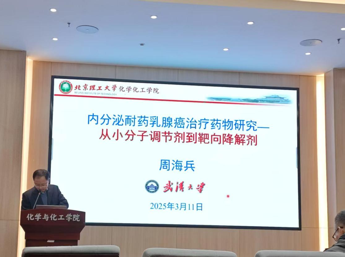 应taptap点点体育邀请,武汉大学药学院周海兵教授于2025年3月11日下午三点莅临北理工“21世纪学科前沿”系列论坛,为我院广大师生带来题为“分泌耐药乳腺癌治疗药物研究——从小分子调节剂到靶向降解剂”的“21世纪学科前沿”的精彩学术报告。本次报告在生态楼118报告厅进行,由梁建华老师主持,吸引了众多师生和科研工作者的积极参与。