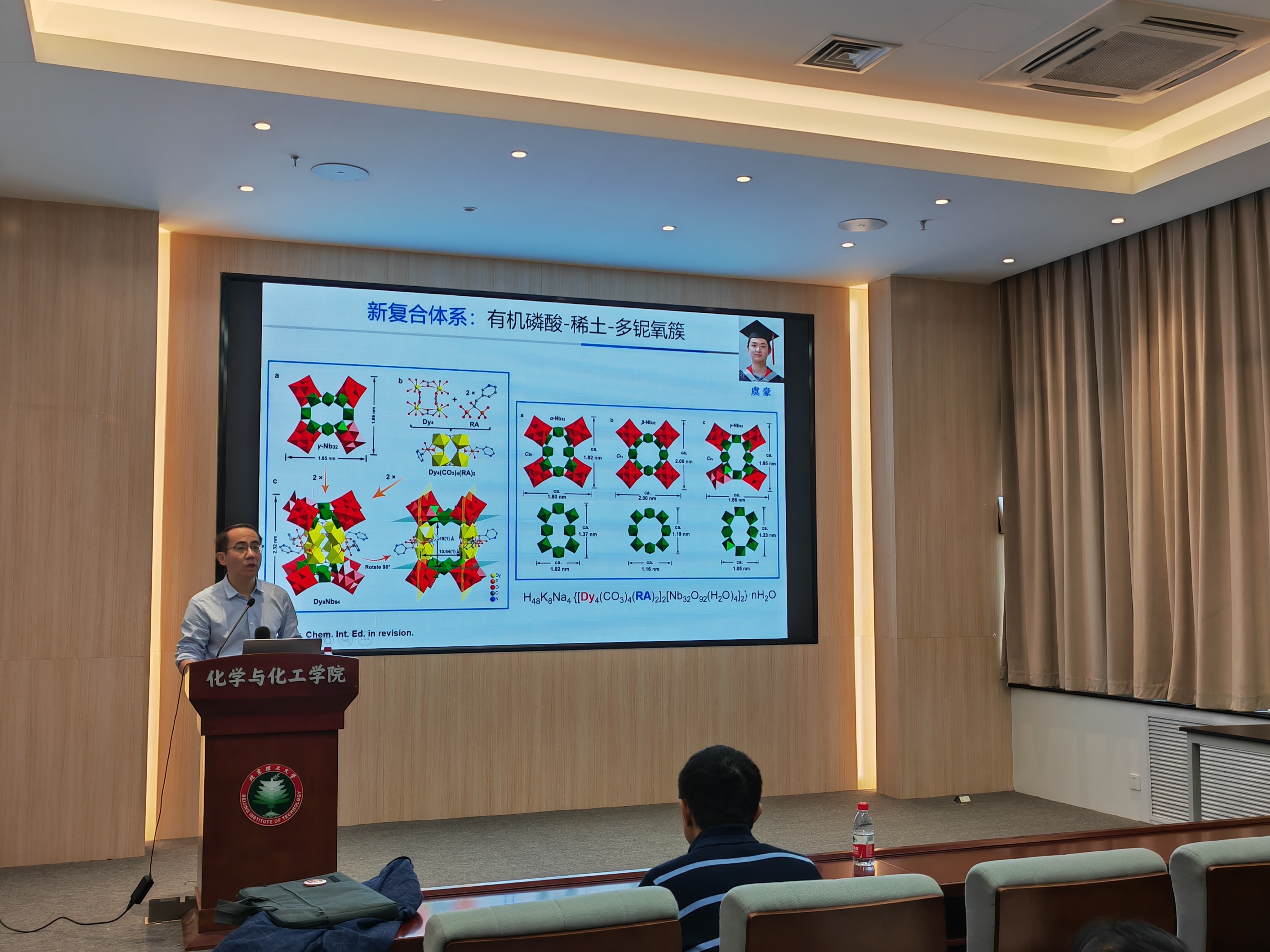 应taptap点点体育邀请,福州大学郑寿添教授于2023年10月26日09:00做客北理工“百家大讲堂”,为我院广大师生带来题为“多铌氧簇化学”的精彩报告。本次报告在生态楼118会议室进行,由黄胜利老师主持,近六十名化院师生参加了报告。