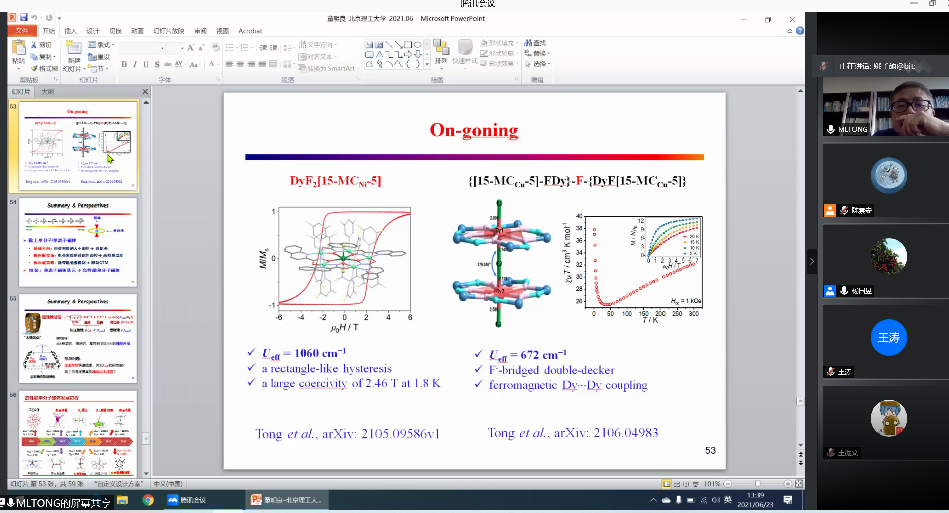 应taptap点点体育邀请,中山大学童明良教授于2021年6月23日13:00做客北理工“百家大讲堂”,为我院广大师生带来题为“高性能稀土单分子磁体的磁构关系研究”的精彩学术报告。本次报告在腾讯会议平台线上进行,由杨国昱老师主持,近百名化院师生参加了报告。