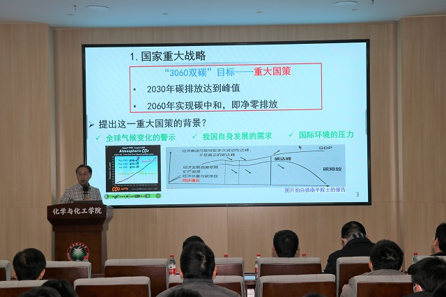 赵之平教授作了《减碳技术之生物质转化与利用》的主旨报告,从“国家重大战略”、“碳排放的内涵”等层次阐述了碳中和的实现将需要各类技术协同和集成,作为化工科技工作者,结合自己的专业和研究领域,在“本质减碳”、“碳捕集和利用与封存”等领域将大有可为,助力实现“3060双碳”目标。赵教授报告了团队的研究成果之一“生物质转化与利用途径”,在面向生物质解聚和定向转化为能源化学品方面有十余年的积累,取得了系列研究成果,其中生物燃料分离膜的性能处于国际先进水平,将通过国家重点计划项目实施发酵乙醇尾气净化分离CO2的工程应用示范,给研究生同学们带来一场学术盛宴。