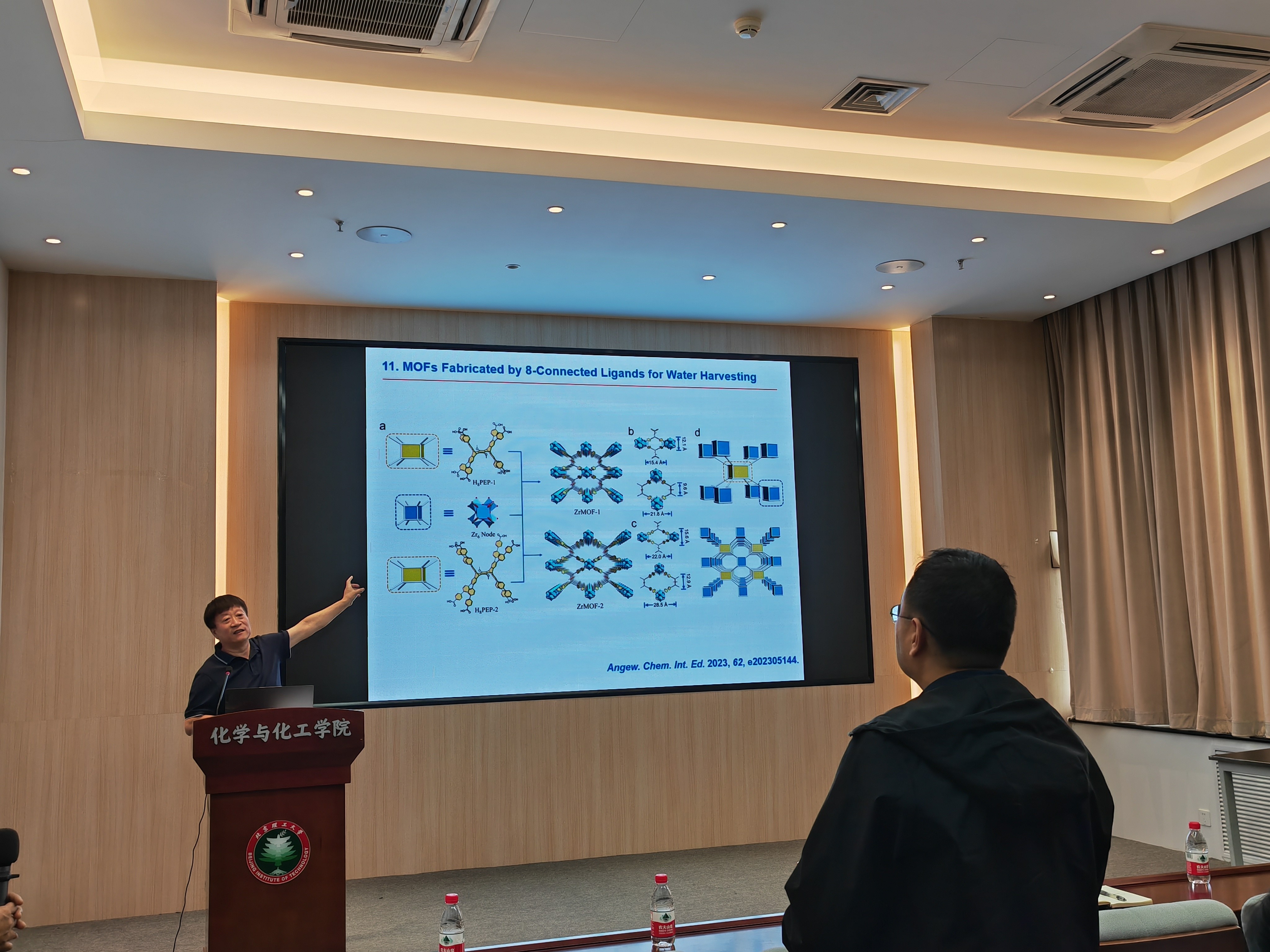 应taptap点点体育邀请,北京科技大学姜建壮教授于2023年10月18日1400做客北理工“百家大讲堂”,为我院广大师生带来题为“Tetrapyrrole-based covalent organic frameworks and beyond”的精彩报告。本次报告在生态楼118会议室进行,由张杰老师主持,近六十名化院师生参加了报告。