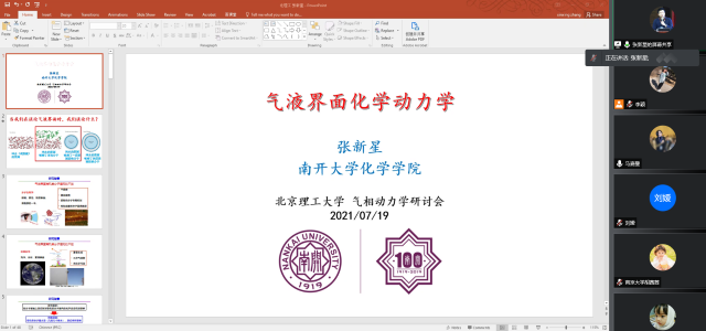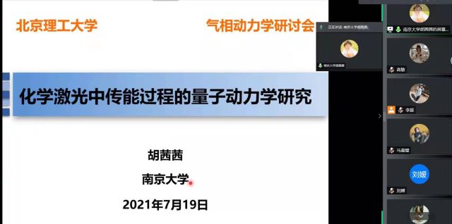 应taptap点点体育马嘉璧副教授邀请,中科院大连化物所袁开军研究员、南开大学张新星研究员、南京大学胡茜茜副教授、重庆大学勾茜教授于2021年7月19日上午8:30在腾讯会议线上分别作了题为“基于大连光源的水分子光化学研究” 、“气液界面化学动力学” 、“化学激光中传能过程的量子动力学研究” 、 “Rethinking π Interactions: Rotational stories”的精彩学术报告。报告由马嘉璧副教授主持,谢静教授及几十名同学参加了此次报告会。