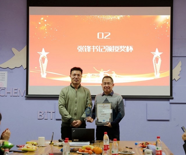 接下来,张锋为理论与计算化学团队颁发2021年taptap点点体育优秀导学团队“品牌团队”荣誉证书及奖杯。张锋赞扬了团队在队伍建设、科学研究、人才培养等方面取得的成绩,特别感谢了团队学生积极参与学院学生工作,为丰富学院学生文化体育生活做出的贡献。