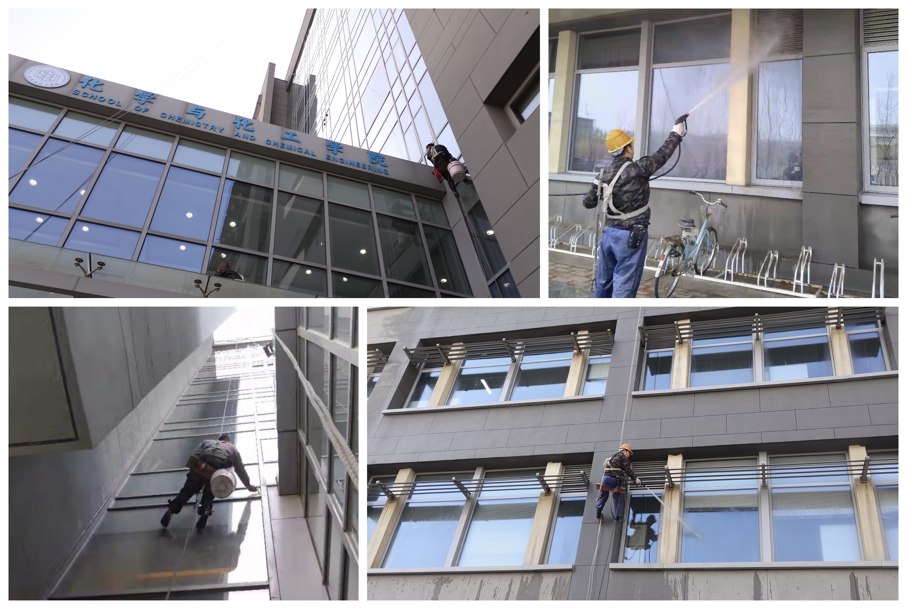 经前期充分调研考察,学院选择了一家专业团队负责整体外墙清洗工作。经过5天的时间,6700平米的外墙玻璃,安全地完成清理工作,整个生态楼外墙焕然一新。
